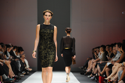 15日,在新加坡濱海灣舉行的奧迪時裝節上,模特展示美國時裝設計師卡羅琳娜·埃雷拉的作品。當日,為期5天的奧迪時裝節在新加坡開幕。