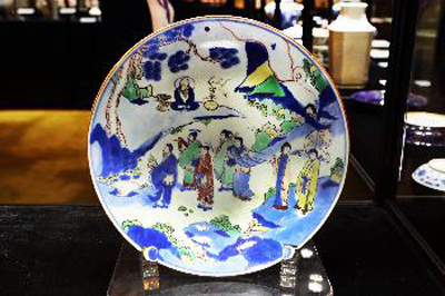 中拍國際2013春拍精品預展近日在北京舉辦。據悉,中拍國際將在京陸續推出古代玉器瓷器及中國名家書畫、中外名家油畫精品、名酒等拍賣專場。圖為拍品——“清順治青花五彩人物大盤”。