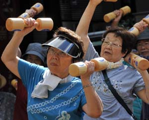 “我耳朵不好使,眼睛也看不清,渾身是病,”87歲的日本老人鎮元悅子(音譯)說,“但我的精神仍然年輕!
