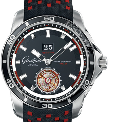 全球限量100枚格拉蘇蒂運動防震陀飛輪腕表,采用直徑46mm的堅固精鋼表殼,并以亮面與霧面拋光交錯處理,兼具堅固耐用與復雜功能,結合現代科技創新與設計。搭載94型自動上鏈機芯,大日歷視窗位于12點鐘,采用黑底白字凸顯。格拉蘇蒂制表廠與位于德國斯圖加特市的弗朗豪夫科技研發團隊合作,研發出制作防震元件的理想材料。這些防震元件由具有韌性的彈性體組成,置于機芯與表殼之間,用于固定機芯。由彈性材料制作的4個緩沖元件吸收了至少60%的外力沖擊。也因為這樣的吸震系統,即使在強撞擊的情況下,亦能確保機芯的可靠性與準確度。