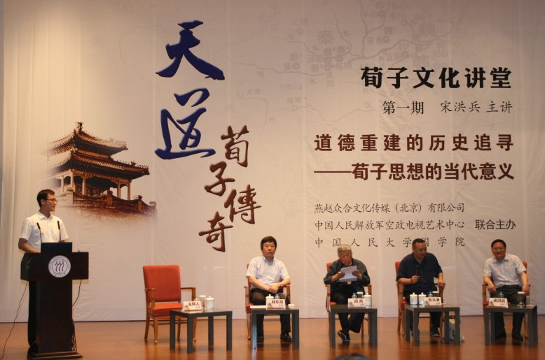 6月13日,大型歷史題材電視劇《天道-荀子傳奇》校園巡講系列活動第一講在中國人民大學舉辦;顒佑裳嘹w眾合文化傳媒(北京)有限公司、中國人民解放軍空政電視劇藝術中心和中國人民大學國學院共同主辦。著名劇作家閻肅作為電視劇總顧問出席了活動。