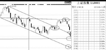 滬市大盤的4日均線(2000.55點)向上移動對股指構成頂托;10日均線暫時成向下運行趨勢,對收在上方的股指具有向下反作用力;股指在頂托力與反作用力的對沖之下,將出現上下震蕩走勢。因此,筆者認為周五大盤股指會先向上小幅拉高,再向下回抽5日和10日均線。