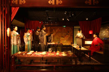 博物館以實物和電影音像展示,中華飲食文化源遠流長。遠古三皇五帝教民生產,解決氏族吃飯問題,而受民尊崇。軒轅黃帝,“藝五種、撫萬民”,對中國農業發展做出重要貢獻,成為中華民族的文明始祖。夏商周時,階級產生,帝王講究禮樂,富有四海,所食之豐富之優良,超過一般百姓。
