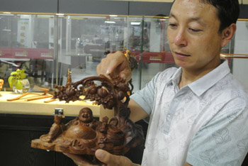 木雕種類紛繁復雜,從材質上區分,有黃花梨、紫檀、樟木、榆木、銀杏和龍眼等,現在最被市場看好的是黃花梨和紫檀,尤其是海南黃花梨木雕備受藏家追捧。張影告訴記者,從上世紀80年代到現在,海黃一直就沒跌過,即便經濟不景氣的時候價格依然十分堅挺,現在一個隨形而雕的黃花梨根雕好的能賣10多萬元。