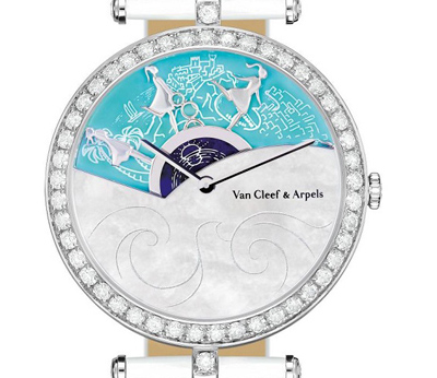 Arpels(梵克雅寶)的詩意復雜功能系列腕表。梵克雅寶的腕表早已超越了單純的對審美的追求和技術創新的范疇,她總是能以浪漫動人的創想巧妙的詮釋時間之美,這種詩意的詮釋已成為梵克雅寶的真正標志,沒枚腕表的設計均力求將這種詩意變為可視的藝術品,向人們訴說著如夢似幻的動人故事。