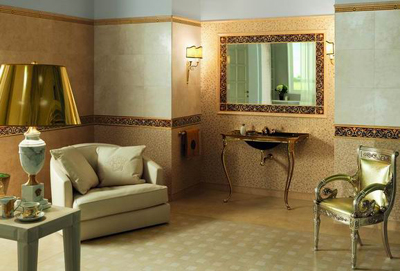 系列為營造不同尋常的魅力氛圍提供多種組合的選擇空間,主打顏色為三種基調:淺駝色,金色和桃木色,地面裝潢的瓷磚尺寸為60x60,墻面裝潢的瓷磚尺寸為39,4x39,4。