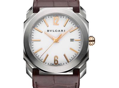 再推出一個新款,選用精鋼配玫瑰金打造,配以白色漆面表盤。精鋼與玫瑰金交錯的色彩效果,尤其突出;加上Octo大膽而經典的設計風格,令這款腕表予人更堅實更有力量之感,特點更鮮明,一眼可辨。