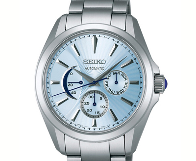 此系列表款搭載了6R21自動兼手動上鏈機械機芯,擁有與表盤相同的午夜藍配色透視背蓋,可清晰看見精密擺動的自動機芯。不銹鋼材質的表身,并在藍寶石水晶鏡面上施以Seiko獨家開發的Super