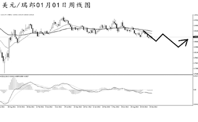 美元兌瑞郎于2013年5月觸及高點0.9840,并在12月跌至0.8800一線,全年波動幅度1000點上下。美元兌瑞郎在2010年11月跌回至平價水位下方之后始終未能重新漲破1.0000,匯價保持震蕩走弱的節奏。美元兌瑞郎在跌破0.8930之后,下方支撐將直接指向0.8565。日線圖MACD發生了角度明顯的底背離信號,預計今年第一季度匯價將發生一定程度的上調,但若無法漲破道氏高點0.9250,后市仍將延續中線的下跌走勢。