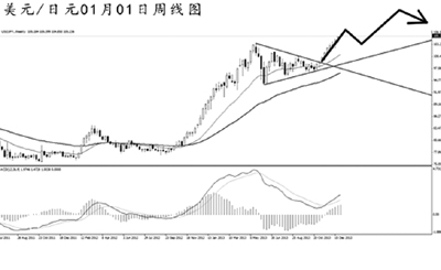 歐元兌美元從2012年中以來始終保持震蕩走高的局面,周線圖上升趨勢線和均線系統都保持完好的依托作用。在2013年年初制造1.3710的高點之后,整個一年歐元都在向此位置重新發起沖擊,直到10月下旬歐元才再度刷新高點觸及1.3830。目前匯價正在挑戰此點位的阻力強度,若升破,歐元將從中長線上打開進一步的上漲空間。預計歐元在今年第一季度面臨一定的下調壓力,但后市延續漲勢的概率很高。