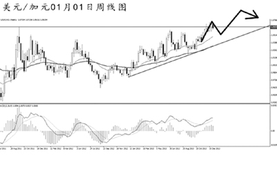 美元兌加元2013年全年都處于緩步震蕩走高的節奏中,從1月份的最低點0.9815,到12月的最高點1.0735,漲幅只有900余點。周線圖上升趨勢線和均線系統都對匯價起到良好的依托作用。2011年10月份高點1.0655對匯價的阻力作用強勁,目前仍未對此形成有效升破。今年初美元兌加元有望走出一波下調趨勢,關注趨勢線1.0390附近支撐,若無法順利跌破此位,中長線的漲勢將繼續保持。