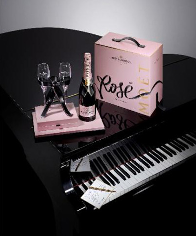 “心系所愛”2014酩悅粉紅香檳以全新理念詮釋象征優雅品鑒儀式的黑色緞帶,配合代表永恒魅力的酩悅粉紅香檳,令每一個與摯愛分享的珍貴時刻愈發美妙動人。精心打造的黑色緞帶蝴蝶結造型支架串連起兩只精美的郁金香杯,整個系列如同珠寶般閃耀迷人,洋溢著優雅的動人氣息。為品味粉紅香檳提供完美視覺體驗,為與摯愛共享的美妙時刻渲染上動人真意。