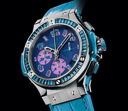 玫瑰粉、幽藍、炫紫、蘋果綠,色彩的爆炸與碰撞完美融合于四款腕表中——色彩斑斕、活力四射,這是對波普藝術(Pop