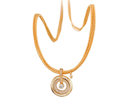 華洛芙全新“真正的喜悅”系列護身符吊墜從兩方面捕獲了佩戴著的心-從容挑選自己深愛的幸運色和19種奇妙的佩戴方式。真正的喜悅護身符吊墜的外環由活潑時尚的顏色與至純的18k黃金相互輝映,構成華洛芙經典風格的抽象羽翼,同時,也為中心的單顆鉆石和整環鑲鉆的內環增加了現代時尚的氣息。中心的獨立鉆石與整環鑲鉆的內環都懸掛于一個精致的珠寶卡扣之上。每個護身符環都用絲綢流蘇裝飾,賦予整個項鏈靈動活潑的韻味和宛如陽光般的溫暖。佩戴者可以在任何時候根據不同的心情改變護身符吊墜的形象,既可以挑選您自己的幸運色,也可以變換為時尚簡約又經典復古的白色琺瑯面,亦或者是選擇閃閃發光的流蘇吊墜。如此的多面性讓擁有這款護身符吊墜的女性無比幸運。