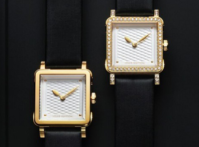 女裝腕表是Emprise系列的巴黎細致工藝美學的典范:表耳設計脫胎自行李箱的黃銅包角,四正方形表殼在倒角打磨表鏡與閃爍美鉆襯托下更覺雅致;絲緞表帶或壓羅緞紋皮革表帶與時裝設計呼應;黃金腕表型號粉白表盤的紋理取材自行李箱內部保護衣物的襯墊;不銹鋼腕表型號的表盤有黑色或白色之別,紋理裝飾如同巴黎古典華宅的墻身木壁板;表盤清簡俊雅不設時標數字,僅于5時位置點綴LV標志,倍添雋永美感。