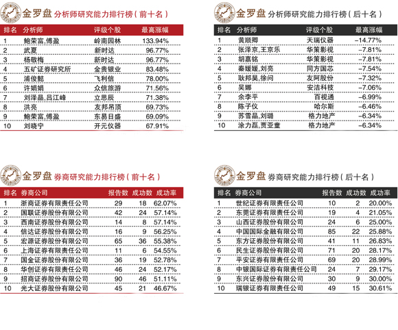 不過,根據金羅盤數據顯示,3月份分析師研究能力榜單前十名的薦股漲幅不及2月份。3月份分析師所薦股票漲幅超過68%即可進入該月研究能力榜單前十名,而2月份榜單前十名的分析師所薦個股的最高漲幅均超120%。