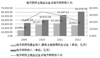 地方政府性債務對土地出讓收入的依賴程度較高,截至2012年底,11個省級、316個市級、1396個縣級政府承諾以土地出讓收入償還的債務余額34865.24億元,占省、市、縣三級政府負有償還責任債務余額93642.66億元的37.23%。地方債務規模還在不斷增大,而靠土地收入來償還地方債的占比又大,因此土地收入對地方政府來說至關重要。