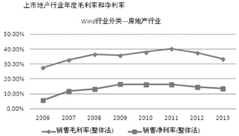 數據統計顯示全國房地產市場總體沒有大幅走壞,但部分城市庫存大,成交萎靡,去化周期長。同時我們從wind行業分類的157家地產上市公司(包括B股)數據統計也可看出,行業整體毛利率,凈利率呈下降趨勢,略顯不景氣。但是地方政府的財政收入對土地財政的依賴性高,推高了土地成本,正常經營的開發商不可能會虧本銷售。所以從生產成本方面來看房價大幅下降的可能性不大,只會是部分資金鏈斷裂和緊張的地產商會讓渡部分利潤,出現少量打折降價促銷的樓盤來促進成交,回籠資金。在這種情況下,地產行業未來必然會面臨一些重要的調整,資金充裕的大型地產商,在減少新開工,逐步去庫存的同時可以兼并重組小型面臨困境的地產商,促進行業的整合和重組。