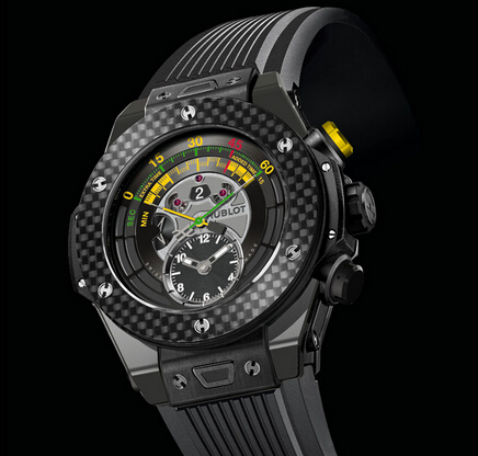 Bang”.的美譽!兩款腕表可供選擇:18K王金碳纖維表圈,限量發售100枚;黑色陶瓷碳纖維表圈,限量發售200枚。