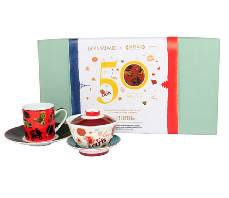 2014年,是香港著名茶莊品牌福茗堂的「巧手」主題年,同時,為慶祝中華人民共和國與法國建交五十周年,福茗堂茶莊與法國瓷都里摩日(Limoges)的栢圖(Bernardaud),攜手合作設計了一對限量1,964件,融合兩國國飲文的中國蓋碗茶盅與法國咖啡杯,并由栢圖負責生產。