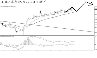 美元兌瑞郎短線的反彈雖然力度不算強,但延續良好。日線圖上看,均線系統依托排列,上方的明顯阻力在0.9155,匯價仍有一定的上漲空間可供利用。4小時圖匯價持續創新高,但MACD的頂背離信號明顯,且沒有構筑出任何良好的調整節奏。目前仍可謹慎看漲,但需要警惕匯價隨時可能暴發的強動能下調。