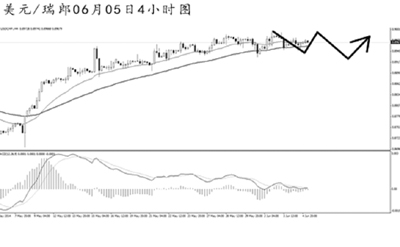 美元兌瑞郎持續走高,但多頭力度明顯不足。4小時圖MACD的頂背離信號明顯,上升趨勢線被小幅跌破。預計匯價有一定的下跌壓力,有效跌破0.8930之后存在入場做空的機會。
