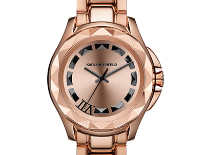 Lagerfeld的專屬色彩。玫瑰金色的點綴為腕表帶來了一抹全新色澤,精致的鍍層盡顯時尚優雅。經典的KARL