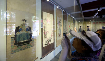 在展廳內,6件慈禧太后私人定制款的“大雅齋”瓷器吸引了不少觀眾的目光。走近這6件慈禧私人定制款的瓷器,記者看到其釉色明媚清亮、紋飾花鳥爭奇斗艷,淡雅的天藍地配素凈的白菊……不僅筆意清新,也體現出宮廷的繪畫特征。沈陽故宮博物院院長白文煜說,“大雅齋”幾乎是慈禧瓷器的代名詞。大雅齋瓷器上有“天地一家春”印文,這本是圓明園內的一處建筑名稱,“大雅齋”則位于“天地一家春”的西間,是供慈禧繪畫習字的自用畫室。瓷器上的鈐印“大雅齋”是慈禧的私人堂款。因此,大雅齋瓷器被看做為“大雅齋”畫室燒造的慈禧太后專用瓷。