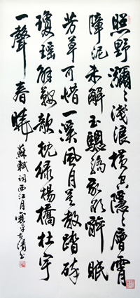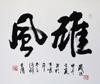 闞宇清,號古清,一九三八年生于沈陽,家世從商而重文,幼讀私塾學啟蒙之文,書法柳公權,中年改臨羲獻、蘇米、王鐸,讀帖臨池至老不輟。生性喜游,數十年間國內外行四十余萬里,博覽古今勝跡,摩崖石刻,謁訪名家,切磋書藝,故書中有柳之筋骨,蘇之豐潤,王鐸米芾之豪宕不羈;尤善作榜書,結體嚴謹、雅俗共賞,省內寺廟匾聯、高速公路站名、商業牌匾多用其書,所參加國內外書法大賽,皆得入選或獲獎;其作品在美、日、港、臺展出并被收藏。