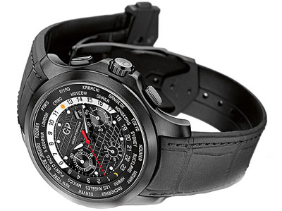 WW.TC旅行家系列世界時腕表選擇強烈的黑色造型,全新鈦金材質脫穎而出擁有鮮明的個性和高復雜度。此款腕表搭載特別為此系列而制的機械機芯,擁有世界時和計時功能。