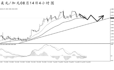 美元兌加元超過一周的時間在高位進行調整,上沖勢頭明顯放緩,上升趨勢線的支撐位在1.0875,預計匯價將逐步向此位置發起挑戰。短線可謹慎看空,在跌破上述支撐之前,只存在博弈性入場的機會。