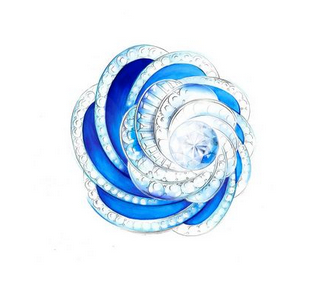 柔和蜿蜒的鉆石線條生動描繪舞蹈裙擺,精致細膩的珠寶設計延續優雅旋轉之姿。白鉆的耀目璀璨與砂金石的深邃湛藍在鏤空圖案中交相輝映,好似光與影的明滅交融。