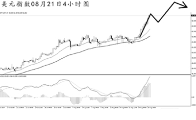 盡管耶倫此番在央行年會上的發言很有可能繼續“打太極”,但市場對美國經濟的樂觀預期仍然在推高美元。美元指數經過兩周的盤整再度強力沖高。從日線圖上看,價格連續收出實體陽線,多頭動能重新占據優勢。上方強阻力在84.70,美元指數仍有較為廣闊的上漲空間。從4小時圖上看,MACD已經進入到多頭動能充盈的階段,均線系統形成多頭排列。短線上漲斜率陡峭,預計美元指數小幅下調后仍然將以沖高走勢為主。