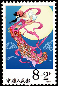 2007年8月30日,中國郵政發行一枚《中秋祝!穼S闷胀ㄠ]資信封,這也是我國發行的唯一一枚以月亮為主圖的郵資票品;2013年8月15日,中國郵政還發行一枚《團圓》個性化服務專用郵票,附票圖案為嫦娥奔月。