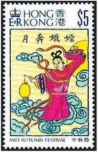 我國港澳臺三地郵政也都發行過有關中秋節的郵票,設計元素當然也少不了中秋圓月。最早與中秋節有關的郵票,是臺灣于1966年9月29日發行的《民俗郵票》中的第三枚,以中國傳統繪畫的形式,展現嫦娥奔月。1975年7月31日,香港發行《香港節日》郵票一套3枚,其中“中秋節”一枚用七巧板拼成了一幅花燈明月圖,描繪出亮麗圓月下的金魚燈,展現出人們手提燈彩、歡度中秋的熱鬧景象,這在所有中秋節郵票中也是畫面最獨特的。1994年6月8日香港發行的《中國的傳統節日》郵票,其中第4枚“中秋節”主圖為“嫦娥奔月”,這也是香港迄今唯一以年畫形式設計的郵票。1981年10月1日,澳門發行《中秋節》郵票一套4枚,這是第一套真正為中秋節而推出的郵票,也是枚數最多的一套中秋節郵票。每枚郵票的主圖以宋體“秋”字為主圖,分別配以嫦娥奔月燈、葫蘆燈、八角燈、獅子燈,描繪出張掛燈彩、歡度中秋節的熱鬧畫面。