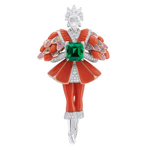 年代中期推出「仙子」胸針,旨在將女性的纖柔優雅演繹至極。而以玫瑰型切割鉆石鑲嵌面部的設計更是恰到好處地雕琢與還原出芭蕾舞伶的花容月貌,盡顯世家的精湛工藝與獨特風格。這些長著翅膀的嫵媚身影是幸福與希望的象征,也令眾多收藏家為之一見傾心。仙女們或手持魔法棒,或妝點珍貴的寶石頭飾,不僅成為