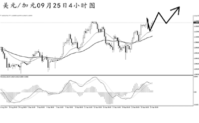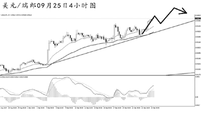美元兌瑞郎高位盤整之后繼續強力走高。日線圖上漲斜率陡峭,由于上方近期并沒有明顯的強阻力,匯價仍有較為廣闊的沖高空間。4小時圖上升趨勢線的支撐作用完好,均線系統多頭排列。MACD頂背離信號明顯,但在跌破趨勢線支撐之前,需繼續抱以看漲的思路,首要目標0.9650一線。