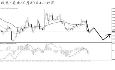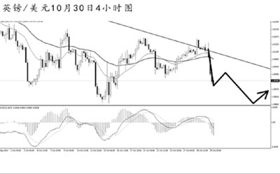 歐元兌美元反彈過后再度大幅下跌。歐元的震蕩仍在延續,目前匯價即將挑戰1.2605的道氏低點支撐,跌破后方可向1.2500發起沖擊。短線的跌勢十分迅猛,MACD顯示空頭動能強勁,預計歐元小幅調整之后將繼續以走弱為主。