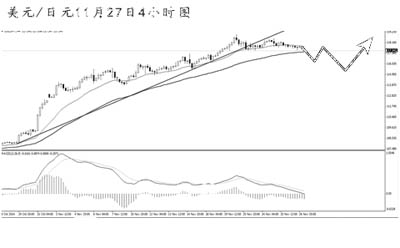 ▲美元兌日元跌破趨勢線之后的高位盤整時間已達一周。4小時圖均線系統仍然保持依托排列,由于匯價持續創出新高,MACD發生了多次角度明顯的頂背離信號。短線匯價始終未能再度暴發多頭動能,后市繼續面臨下調風險!