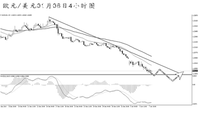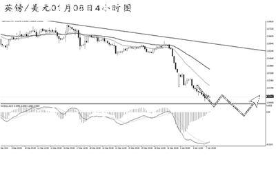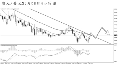 英鎊兌美元保持緩步走低的節奏。從日線圖上看,新年開盤以后,價格下跌的幅度已超過500點,MACD底背離信號明顯,但由于下降趨勢線未被升破,效果相對有限。從4小時圖上看,匯價調整過后再創新低,均線系統重新形成完好的空頭排列。短線下跌力度雖然有所減弱,但在展現出強勁的多頭動能之前,需繼續對英鎊抱以看空思路。