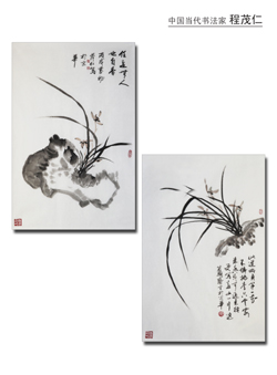 老四程茂仁,1947年生于北京,自幼受家庭的熏陶,隨父習畫。后又受教于著名書法家黃高漢先生,臨習《柳公權玄秘塔》、《顏真卿多寶塔》等碑帖,并得其父好友蕭勞、王遐舉先生的教誨,走上了學習書法之路。為了更好地學習和交流書法藝術,1998年退休后,他從山東回到北京,專心致志搞書法;氐奖本┖,他遍訪北京書法名家,虛心求教,廣泛交流,受益頗多。2002年,又拜歐陽中石先生為師,得到先生的親自教誨,更使其書法平添了幾多神韻。