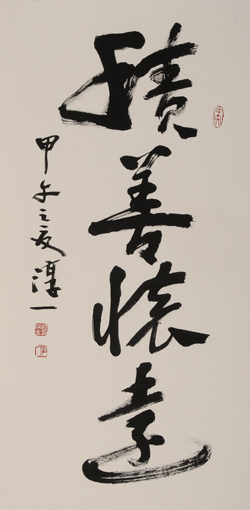 茂全的書法沉穩靈動,結構嚴謹;行筆灑脫流暢,成竹在胸,積四十余年的功夫在里面,可以說是修來的果、悟出的道、品出的禪,個中三昧,得之不易。溥杰先生為其題詞“味從勤里得!笔拕谙壬Q之為“后起之秀”。大康先生送字三個,叫“池水墨”,涮筆洗硯竟至池水如墨,功夫下到這份上,能無得乎?