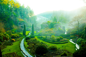 第一次來到位于加拿大西部維多利亞的布查花園時,是在十二月的冬日,只見園內一派茵綠。其中的“下沉花園”,也是最主要的一塊園區,好似山間盆地,四周峭壁環抱。當時正值雨后,云煙繚繞,清風蕩漾,靜謐幽深,層碧疊翠。此時,我真不知身在何處:似是陶淵明筆下的世外桃源,但卻游人如織,猶如車水馬龍;若是金庸小說中游俠出沒的深山,卻又如此平和、安寧。我被這奇景所震撼。