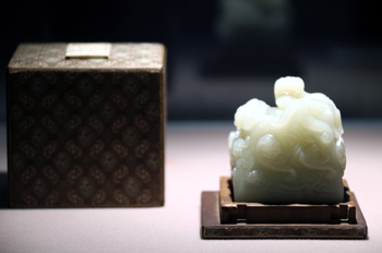 香港蘇富比2015年春拍預展中展出的清雍正帝御寶白玉方璽,在4月7日拍賣中以1.049億港元成交。 |