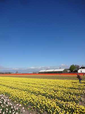 當飛機快要降落到阿姆斯特丹史基浦機場時,透過舷窗觀望,一望無際的各色郁金香花田,仿佛給大地披上了一片片五顏六色的地毯,在蔚藍的蒼穹下,呈獻一幅遼闊壯麗、耀眼斑斕的自然之美。五彩的花田,繽紛綻放,荷蘭的春天就是這般美麗。