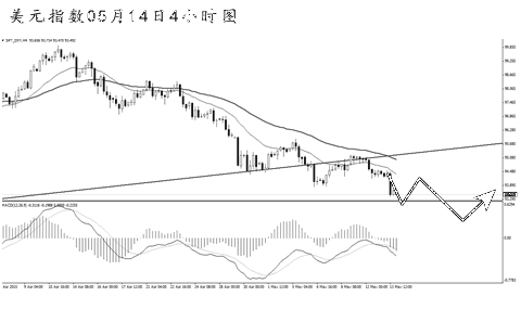 美元指數未能重新升破上升趨勢線的阻力,短線繼續下行回落。從日線圖上看,下方道氏低點支撐在93.20,美元指數即將向此位置發起沖擊。MACD顯示空頭動能仍然強勁。從4小時圖上看,美元指數主趨勢向下,均線系統保持完好的壓制排列。短線的下跌力度較強,目前面臨一定的上調壓力,但后市延續跌勢的概率較大。