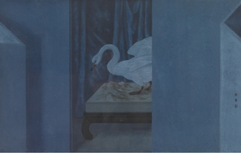 袁遠來自杭州,2008年畢業于中國美術學院碩士學院,是近年備受關注的年輕藝術家之一。袁遠畫作的畫面充斥著懷舊感,流露一種令人無以名狀的傷感及失落。他的筆觸細致中見變化,遠看高度像真,近見藝術家感性的筆觸,充滿著情感的悸動。袁遠喜歡以室內空間作為題材,在宏偉與廢墟的場景之間,抓著空間對觀者的心理投射,形成超現實的視覺感官經驗!读鲃又肥瞧渲歇毺刂,畫面描述一個教堂的內部,玻璃窗透著的并不是澄藍的天空,而是海洋的深淵,教堂猶如浸沒在汪洋之中,是一則令人深思的暗喻。