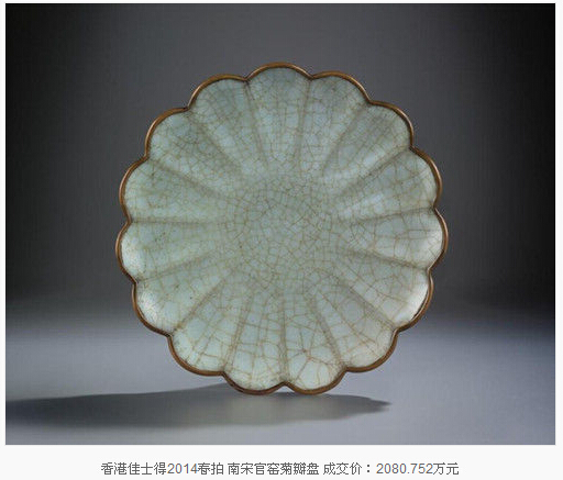 雖然古瓷市場的熱點目前仍在明清瓷器,但以宋瓷為代表的高古瓷器低迷的市場狀態正在逐年改變,精品面世屢屢振奮市場。2014年香港蘇富比春拍一件“北宋定窯劃花八棱大盌”以1.16億元成交創造了宋代瓷器的世界拍賣紀錄。今年4月的香港蘇富比又推出一件“南宋官窯青釉八方弦紋盤口瓶”,以9190萬元拍出。低價位如今年香港佳士得春拍,估價30-50萬港元的元明哥窯盤亦爆冷以880萬港元(人民幣704.88萬元)的高價成交。保利2015春拍,13世紀乾隆御題官窯貫耳小壺747.5萬元成交。