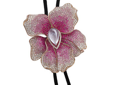 “蘭花系列”每片花瓣都經過技藝匠工之手對貴重金屬進行反復的拉絲和打磨,與設計師Aster Ma不斷地琢磨花瓣與花瓣之間的層次,以及每片花瓣獨有的彎曲和褶皺呈現作品的綻放之美;作品系列中的寶石皆為匠工肉眼篩選,手工搭配以呈現漸變效果;匠工依據寶石顏色分類、排序,并編號鑲嵌,繁瑣的手工藝和寶石天然的顏色無可復制,使得“蘭花系列”成為獨一無二的至臻作品。