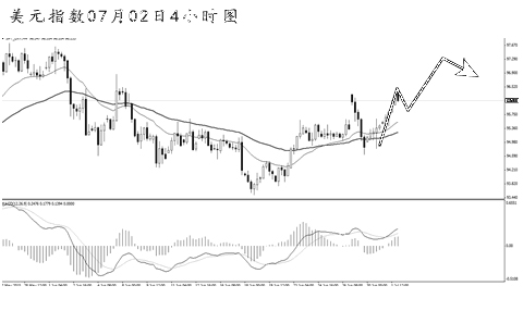 美元指數再度回到周一跳空高開的位置附近。從日線圖上看,美元指數仍然圍繞均線系統反復穿越,上方強阻力在97.75,美元指數必須升破此位置后才能進一步向前方高點發起沖擊。4小時圖強動能交替節奏仍然十分頻繁,后市若想發起進一步的上攻,必須重新站穩在96.30一線的高點上方。預計短線小幅調整過后仍有繼續走強的動力。